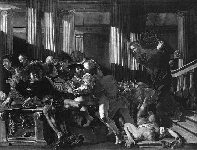 Cristo expulsando a los mercaderes del Templo, pintura de Cecco del Caravaggio. Jesús, exclama a viva voz: "no conviertan mi casa en una cueva de ladrones". Foto de Dominio público.