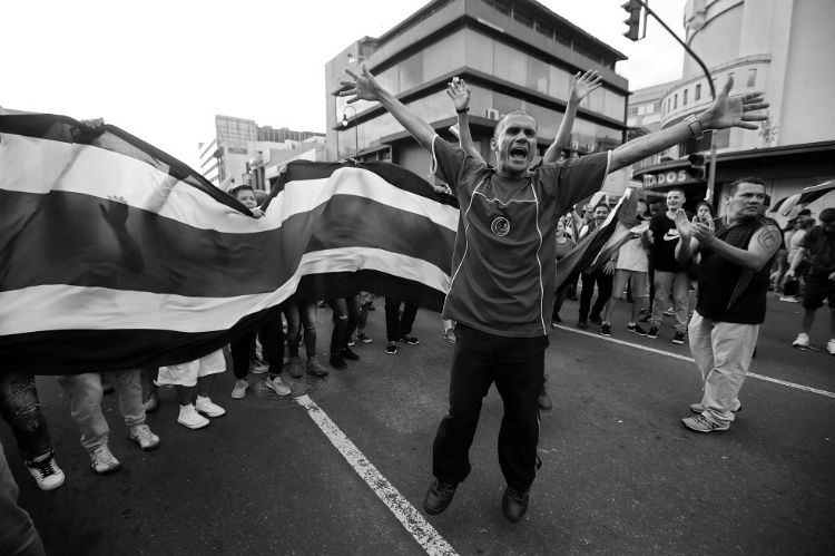 Costarricenses se manifiestan, 19 de agosto, en contra del ingreso de nicaragüenses que piden refugio. EFE