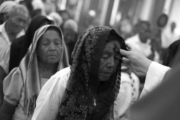 El Miércoles de Ceniza, los fieles católicos asisten a misa y se les impone la ceniza en la frente, la que tiene un sentido de humildad y penitencia. Foto: EFE.