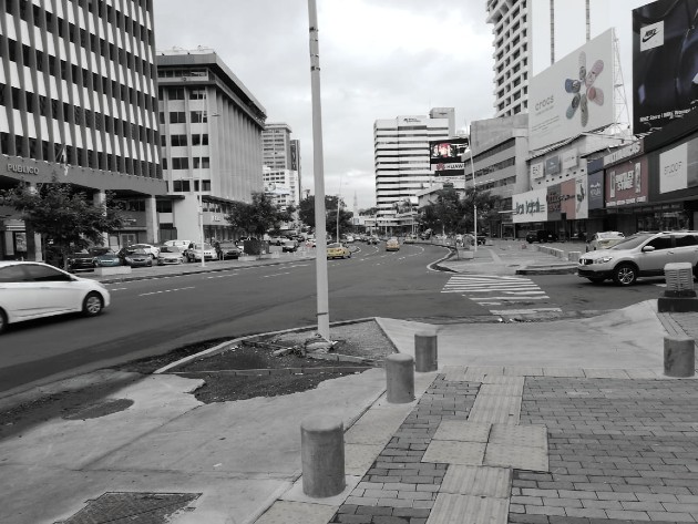 En la Avenida España se observa la acera que está al frete del Ministerio de Economía y Finanzas y del edifico Avesa, cuya colocación de ladrillos no ha sido terminada. Foto: Cortesía d
