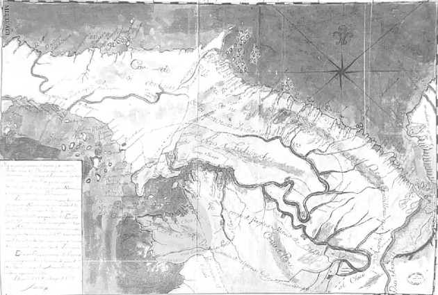 Mapa de la provincia de Darién, confeccionado en 1778. Tomado del libro Panamá. Tierra, gente, legado.. Centenario. Aproximación a las raíces del hombre panameño. Vladimir Berrío-Lemm.