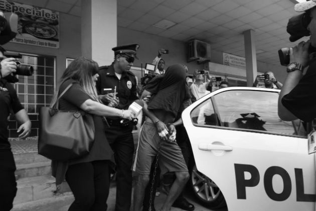 Momentos en que el joven es retirado de la sala de audiencias del Sistema Penal Acusatorio. Foto: Eric Montenegro. Epasa.