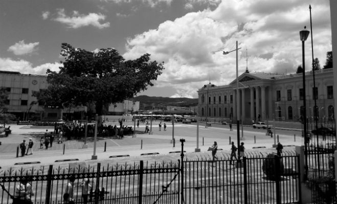 Vista de la Plaza Gerardo Barrios o también llamada Plaza Cívica, donde se realizará, este sábado 1 de junio, el traspaso de mando presidencial. Foto: Andree Cardona. Cortesía