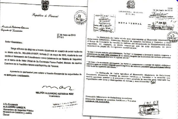 Hay un segundo documento, en el que la Embajada de Italia en Panamá remite una nota verbal a la Cancillería panameña el 6 de agosto de 2010. Para esa fecha, el canciller era Juan Carlos Varela.