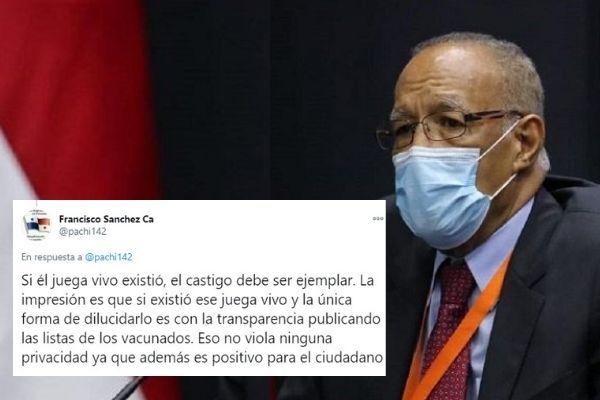 "Si el juega vivo existió, el castigo debe ser ejemplar. La impresión es que sí existió ese juega vivo y la única forma de dilucidarlo es con la transparencia, publicando las listas de los vacunados. Eso no viola ninguna privacidad, ya que además es positivo para el ciudadano", escribió Sánchez Cárdenas en su cuenta de Twitter.