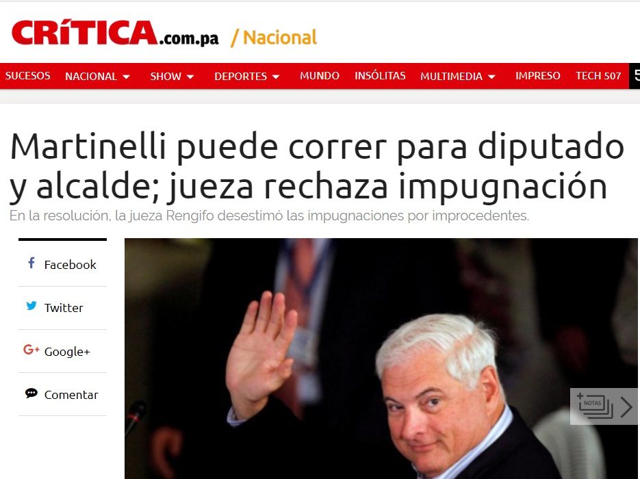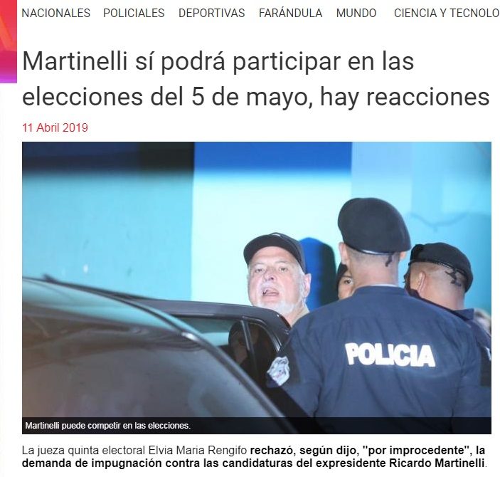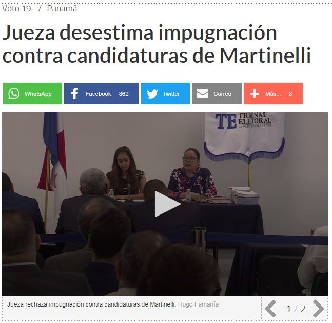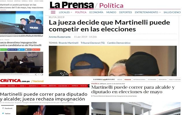 Los diferentes medios locales se hicieron eco de la decisión de la jueza quinta electoral que rechazó impugnaciones contra las candidaturas de Ricardo Martinelli.