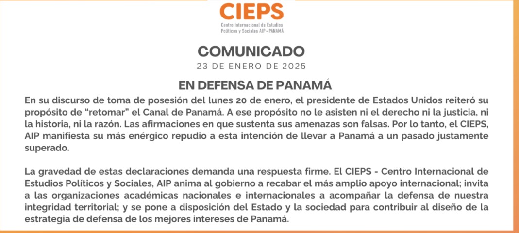 Según el Centro Internacional de Estudios Políticos y Sociales, las declaraciones de Trump, quien manifestó su intención de "recuperar" el Canal de Panamá, no le asisten ni el derecho ni la justicia ni la historia, ni la razón.