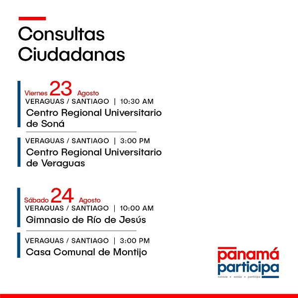 Se han realizado consultas en las provincias de Chiriquí y Bocas del Toro.