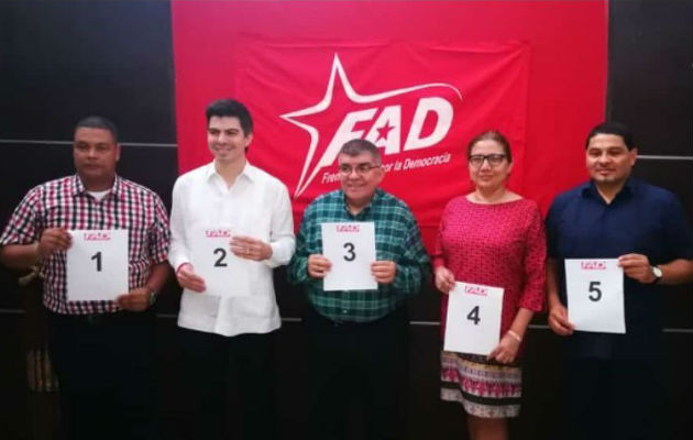 El Frente Amplio por la Democracia (FAD) realizó ayer el sorteo para definir el orden en la papeleta de sus cinco precandidatos a la presidencia, de conformidad con el calendario establecido por el Tribunal Electoral (TE).