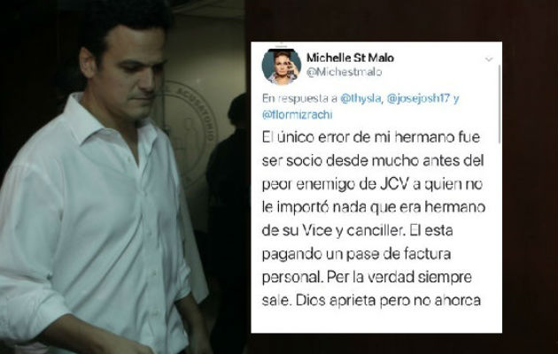 Este sábado, en una serie de mensajes en su cuenta de la red social Twitter, una de las hermanas del empresario que fue condenado por blanqueo de capitales, Michelle De Saint Malo defendió su inocencia, reafirmando supuesta presiones que recibió para un acuerdo de pena.