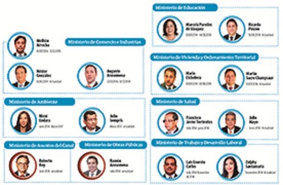en Comercio e Industrias, la historia fue diferente con un trío de ministros en cinco años.