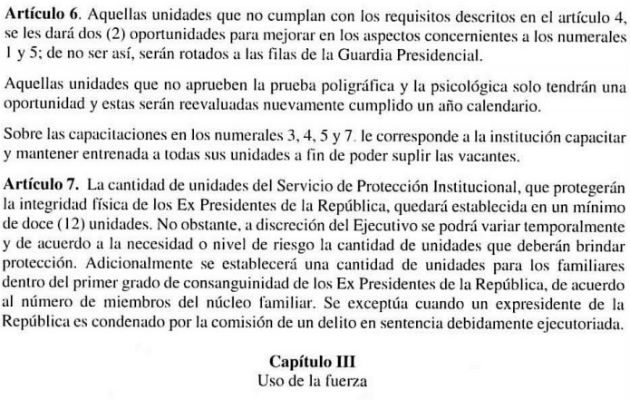 El Decreto Ejecutivo N° 172 de 10 de junio de 2019 aumenta de 8 a 12 los escoltas del SPI que cuiden a los panameños que hayan ejercido el cargo de presidente de la República.