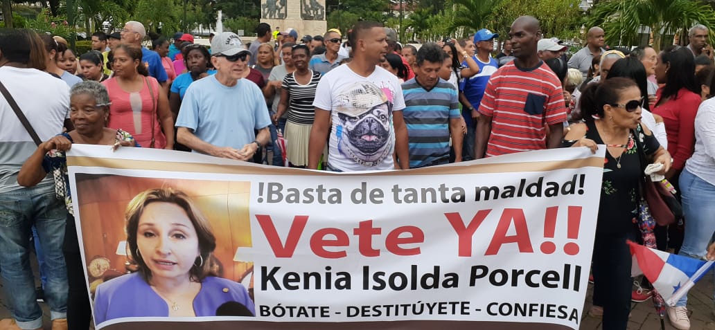 Los manifestantes realizaron la protesta en contra de la procuradora Kenia Porcell en el Parque Porras. Foto Víctor Arosemena