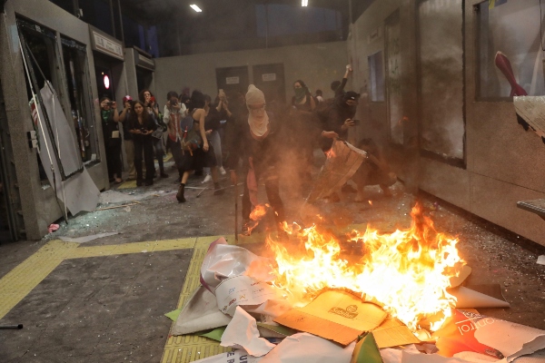 Supuestos manifestantes quienes rechazan las reformas constitucionales hicieron destrozos en la sede del partido oficialista.