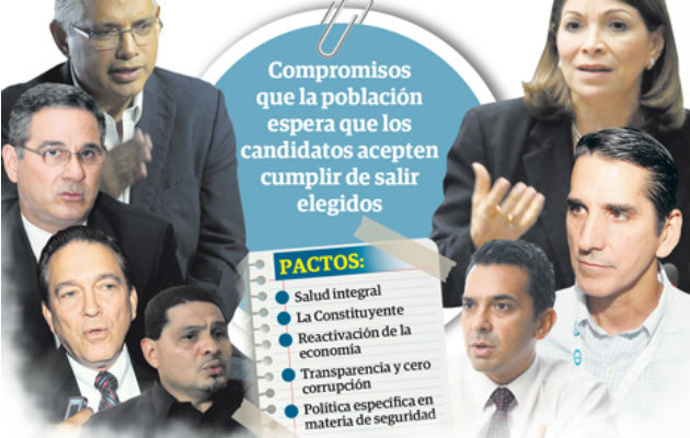 Así como ya se firmó el Pacto de Transparencia y Ética Electoral, y el de Niñez y Adolescencia, se espera que también lo hagan con la constituyente, la reactivación de la economía, la lucha contra la corrupción, continuación de las líneas restantes del Metro de Panamá y un constante compromiso en seguridad.