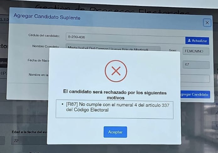 Hechos como el ocurrido con el rechazo por parte de un módulo informático a la candidatura de Marta Linares de Martinelli como compañera de fórmula de Ricardo Martinelli, elevan la duda de los ciudadanos, con respecto a la parcialidad del Tribunal Electoral (TE).