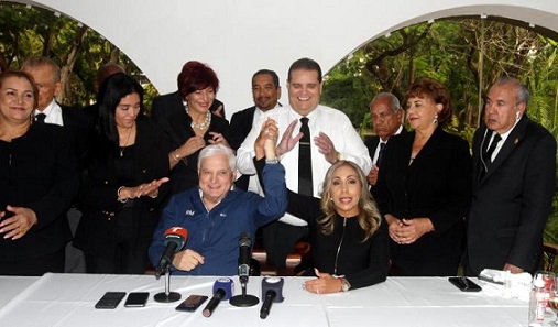Ricardo Martinelli y Yanibel Ábrego junto a un grupo de los diputados de las bancadas de RM y CD. Víctor Arosemena.
