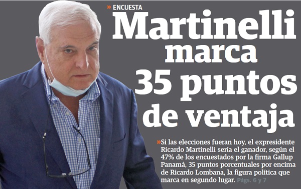 De acuerdo con los últimos resultados de la encuesta de Gallup Panamá, para Grupo Epasa, si las elecciones fueran hoy, Martinelli ganaría la presidencia con el 47% de respaldo, 35 puntos porcentuales por encima de Lombana, quien marca de segundo en la lista.