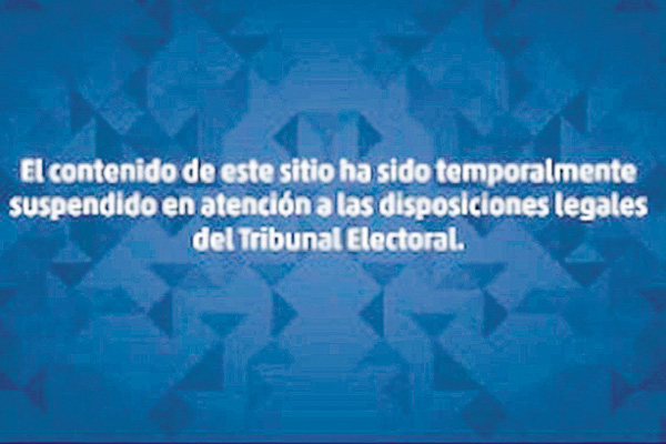 Esta aclaración surgió, porque al intentar entrar a la página web del candidato del PRD, aparecía en primera instancia un anuncio en que se plasmaba que su contenido estaba suspendido debido a disposiciones legales del Tribunal Electoral.