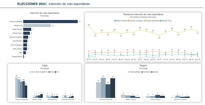 Según la encuesta de Gallup Panamá para Grupo Epasa, correspondiente al mes de mayo, Martinelli lidera la intención del voto espontáneo, con 47%, seguido de la opción 'ninguno', con 24%.