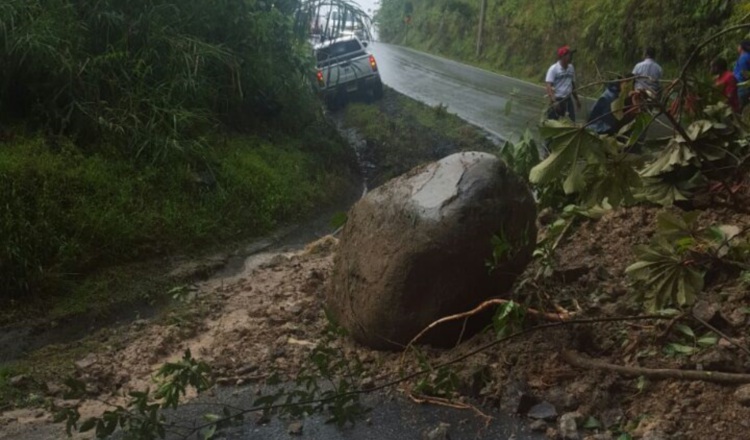 Un cuarto derrumbe se registró en la mañana de este martes en el sector de Los Pozos, en la vía que conduce de Volcán a Renacimiento, en la provincia de Chiriquí, a causa de las fuertes lluvias en el sector.