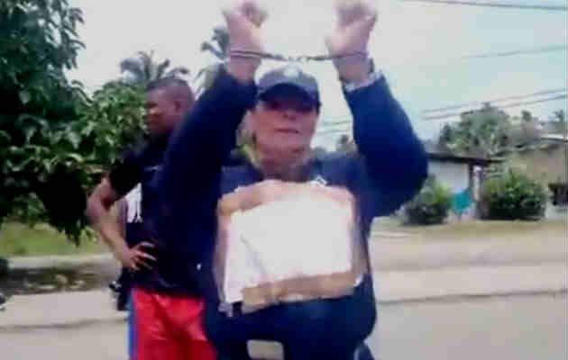 Abren proceso disciplinario a Policía que se esposó y protestó en Bocas del Toro