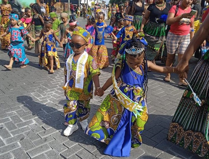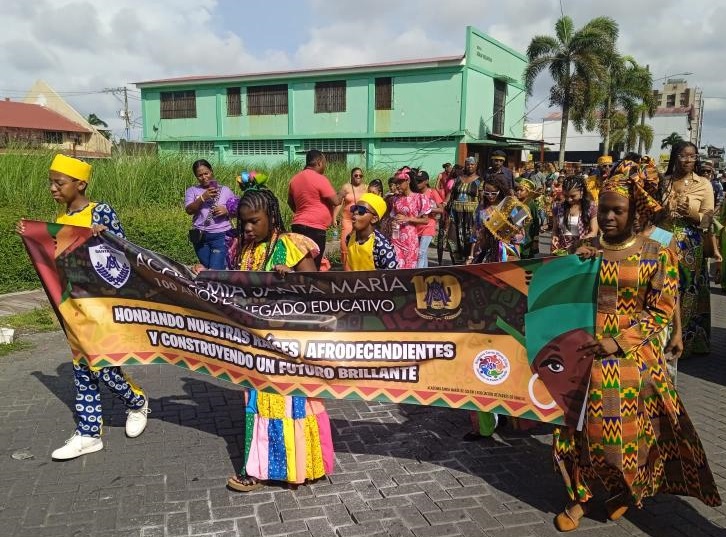 Afrodescendientes desfilan por la Avenida Central de Colón