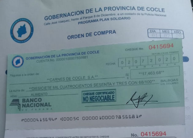 Alertan de circulación de cheques falsos con logos de la Gobernación de Coclé