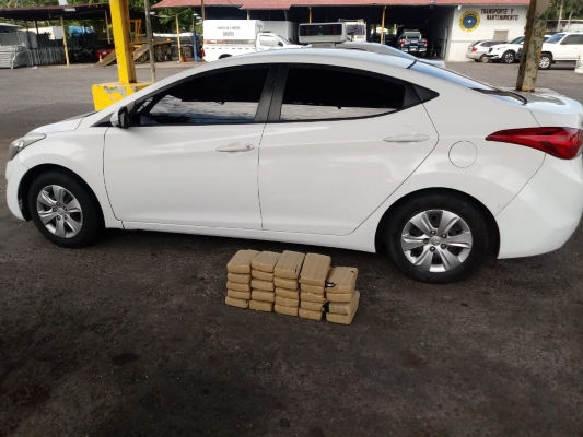 Tres sujetos dos de 26 y uno de 25 años fueron aprehendidos este sábado en un vehículo sedán color blanco cuando trasladaban 24 paquetes rectangulares de la droga conocida como cocaína reveló una fuente policial.