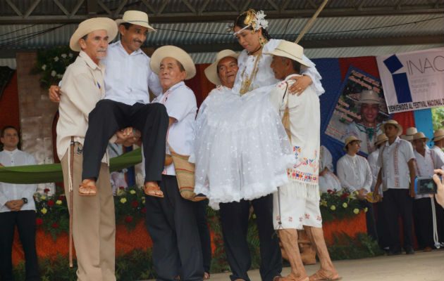 Luego os esposos son llevados al escenario en sillas de manos. Allí y según el protocolo de la celebración del matrimonio campesino los parientes de más edad de los esposos le dieron los alimentos en la boca para que nunca les haga falta.