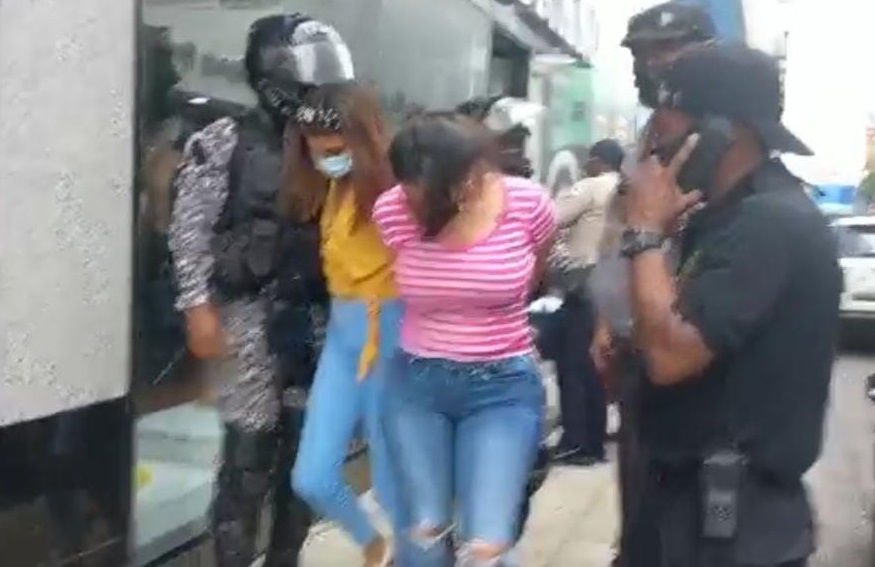 Ambas jóvenes fueron esposadas y trasladadas por la Policía Nacional. Foto: Diómedes Sánchez