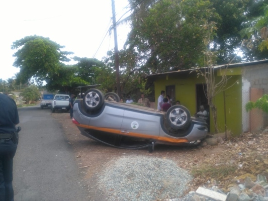 Un gran susto se llevó un conductor que, tras colisionar, quedó volcado a pocos metros de una residencia, en la calle Elías Villarreal, en el corregimiento de Monagrillo, en Chitré.
