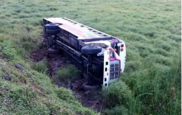 Autobús de la ruta La Valdeza-La Chorrera se sale de la vía y se vuelca