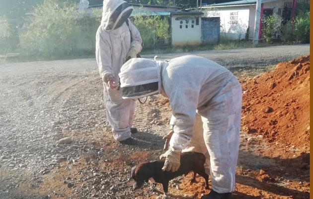 Bomberos en Chiriquí salvan la vida de un canino atacado por abejas africanizadas