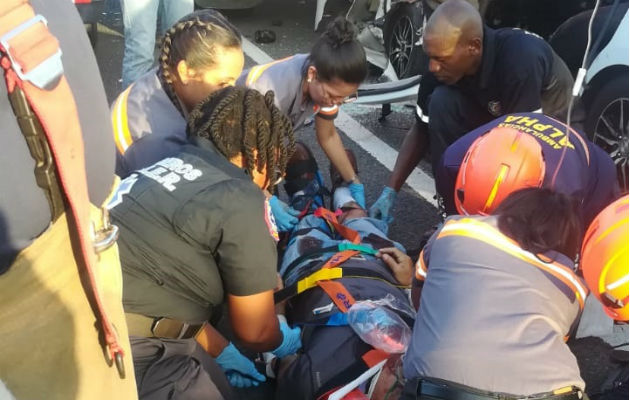 Bomberos logran sacar a hombre atrapado en accidente en la autopista Panamá-Colón