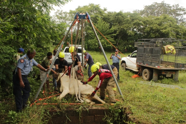 Bomberos del área de Las Tablas, en la provincia de Los Santos, lograron rescatar a una vaca que cayó en un hueco profundo, donde se construiría una fosa séptica en el sector de Llano Abajo, la mañana del martes.