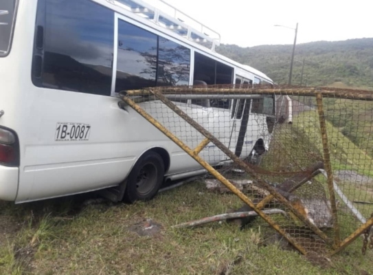 Un accidente de tránsito donde un bus de la ruta David- Changuinola perdió el control y chocó contra la cerca de la represa Fortuna en la provincia de Chiriquí se registró la madrugada de este domingo, dejando tres personas heridas.