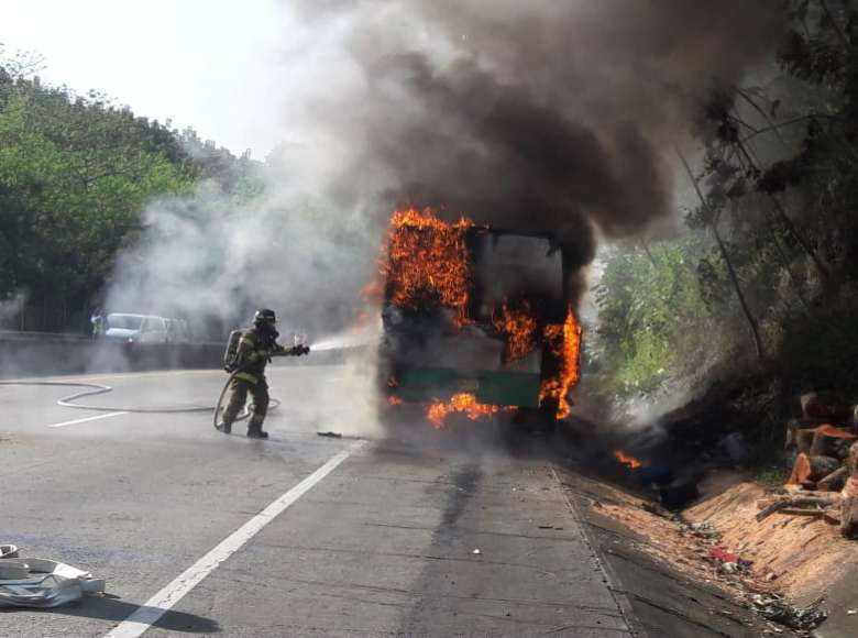 Bus de la ruta Panamá -Colón se incendió en la Autopista Panamá-Colón a la altura de Mocambo en dirección al centro de Panamá.
