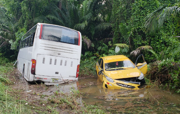 Bus y taxi colisionan, pero terminan en una cuneta de Colón