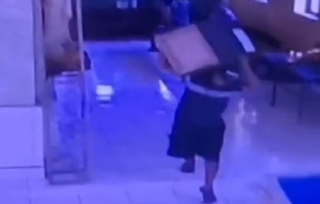 En la cámara de video del santuario, quedó grabado como el hombre descaradamente se colocó al hombro la urna de las ofrendas y salió de la iglesia.