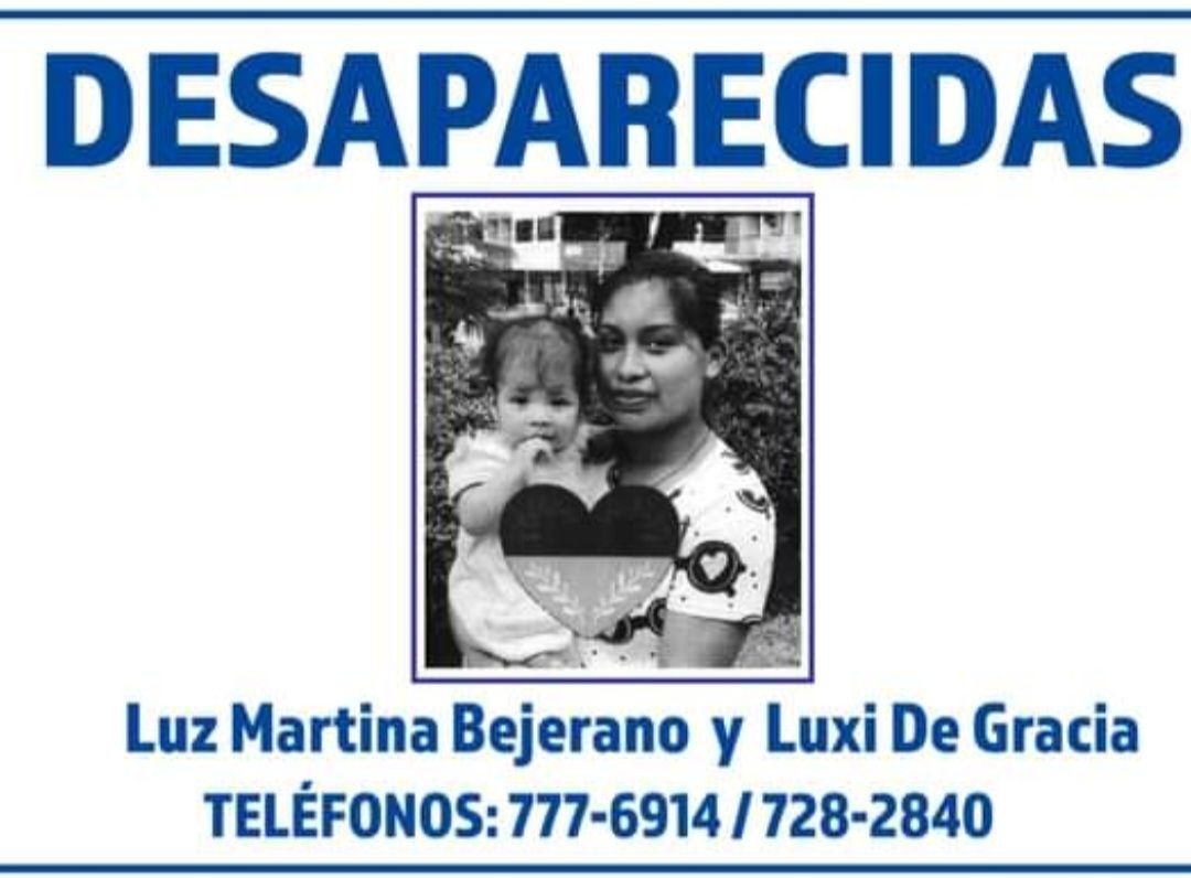 Las autoridades del Ministerio Público a través de Fiscalía Regional de Chiriquí llevan a cabo la investigación por la desaparición de la menor Luz Martina Bejerano, de 16 años, y su hija Luxi De Gracia, de un año, de las cuales se desconoce su paradero desde el pasado 11 de enero del presente año.