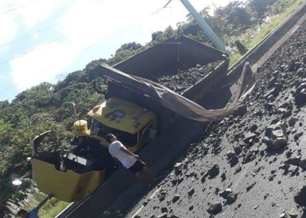 Camión volquete se accidenta en la autopista Panamá-Colón