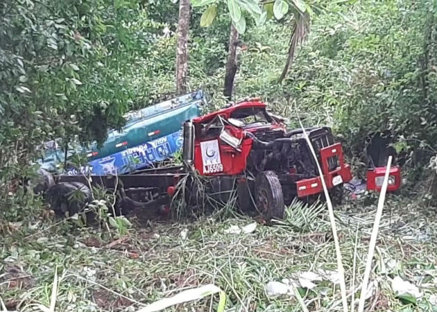 Carro cisterna se va a barranco en Capirita, corregimiento de Sabanitas, Colón
