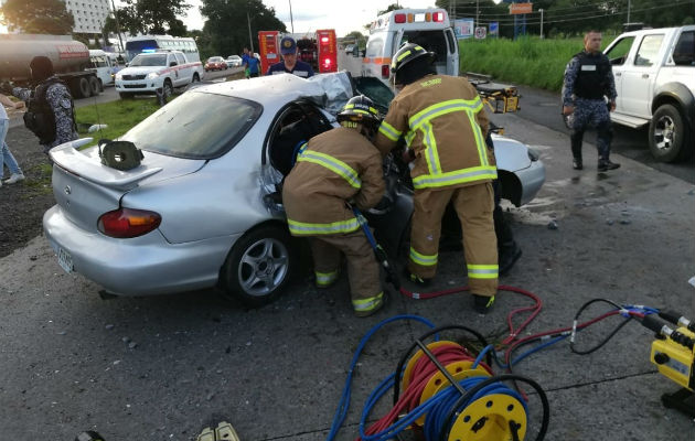 Los bomberos rescatan a unos personas atrapadas luego de una fuerte colisión. Foto/Mayra Madrid