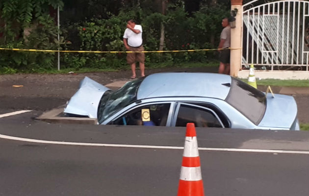 El accidente se dio cuando el conductor de un vehículo sedán chocó contra un objeto fijo (alcantarilla) de forma frontal, quedando incrustado el auto, perdiendo la vida el conductor y su acompañante.