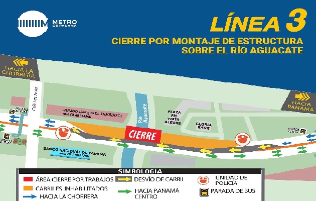 Pese a este cierre, se estará habilitando un carril que se dirige hacia la Ciudad de Panamá para que los conductores que se dirigen hacia La Chorrera puedan circular mientras se desarrollan estos trabajos de instalación de una estructura metálica en el puente sobre el río Aguacate.