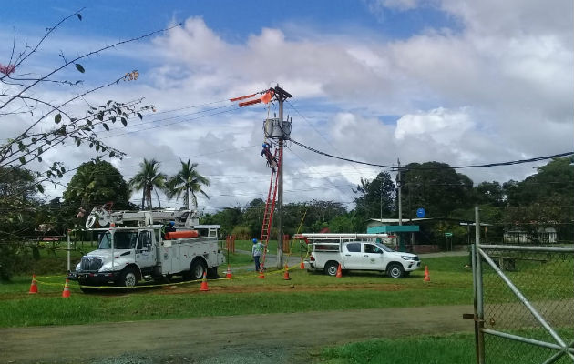 Técnicos trabajando para subsanar el daño eléctrico. Foto: José Vásquez.