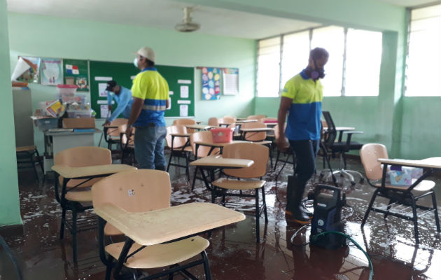 Durante la mañana del martes, cuadrillas del Meduca y trabajadores del plantel realizaron una limpieza en los salones de la parte trasera de la escuela, la cual se extenderá al resto del plantel.