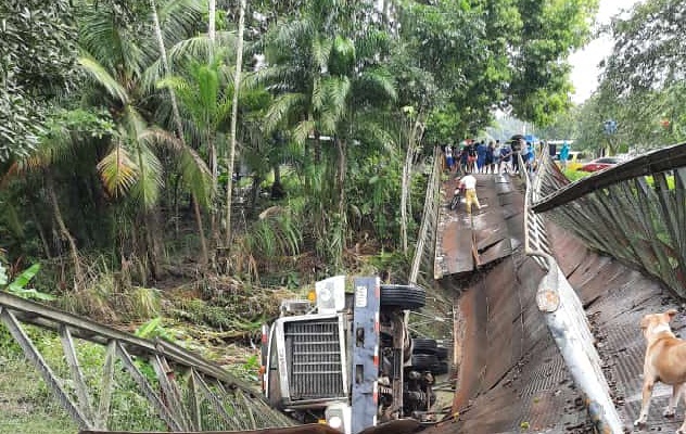 El camión en el momento de registrado el suceso estaba cargado de piedra picada, por lo que no se descarta que el exceso de peso, sumado a las bases debilitadas de la estructura lo llevaron a caerse.