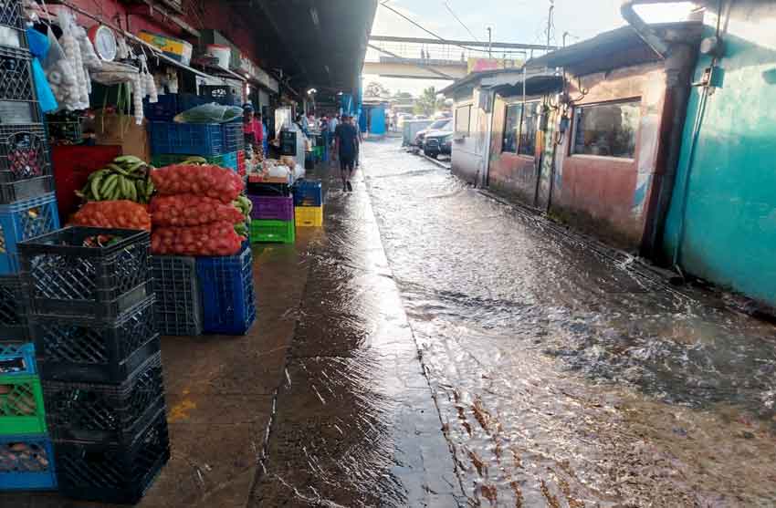 Esto provocó un río improvisado qué llegó hasta locales comerciales dedicados a la venta de frutas y legumbres.